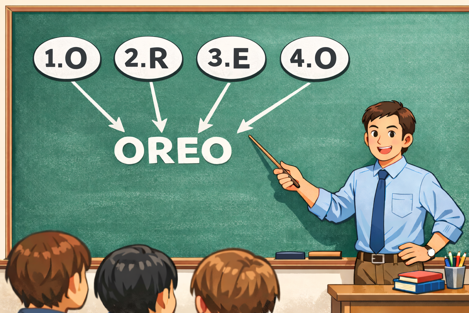 OREOという型を、思考が止まらない形でどう教えるか、前回の記事に繋げる形で、その具体的な考え方と指導のプロセスを整理してみたいと思います。