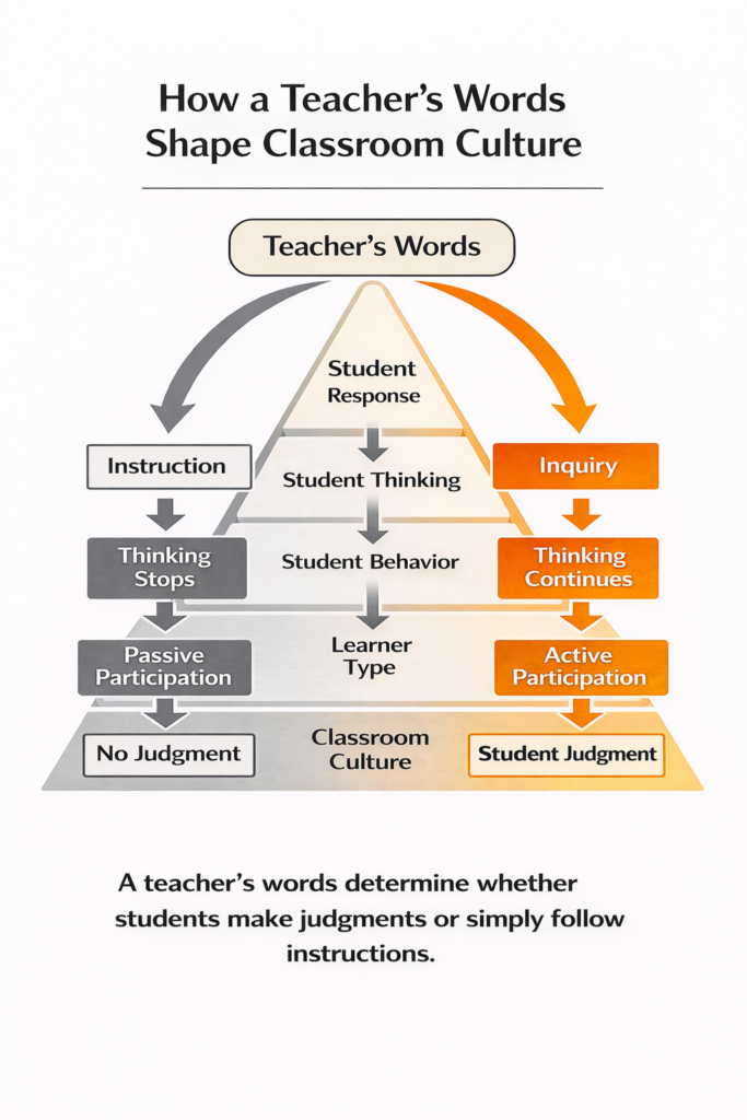 どの考えが拾われ、どの考えが残されずに消えていくのかまで、教師の一言が方向づけています。